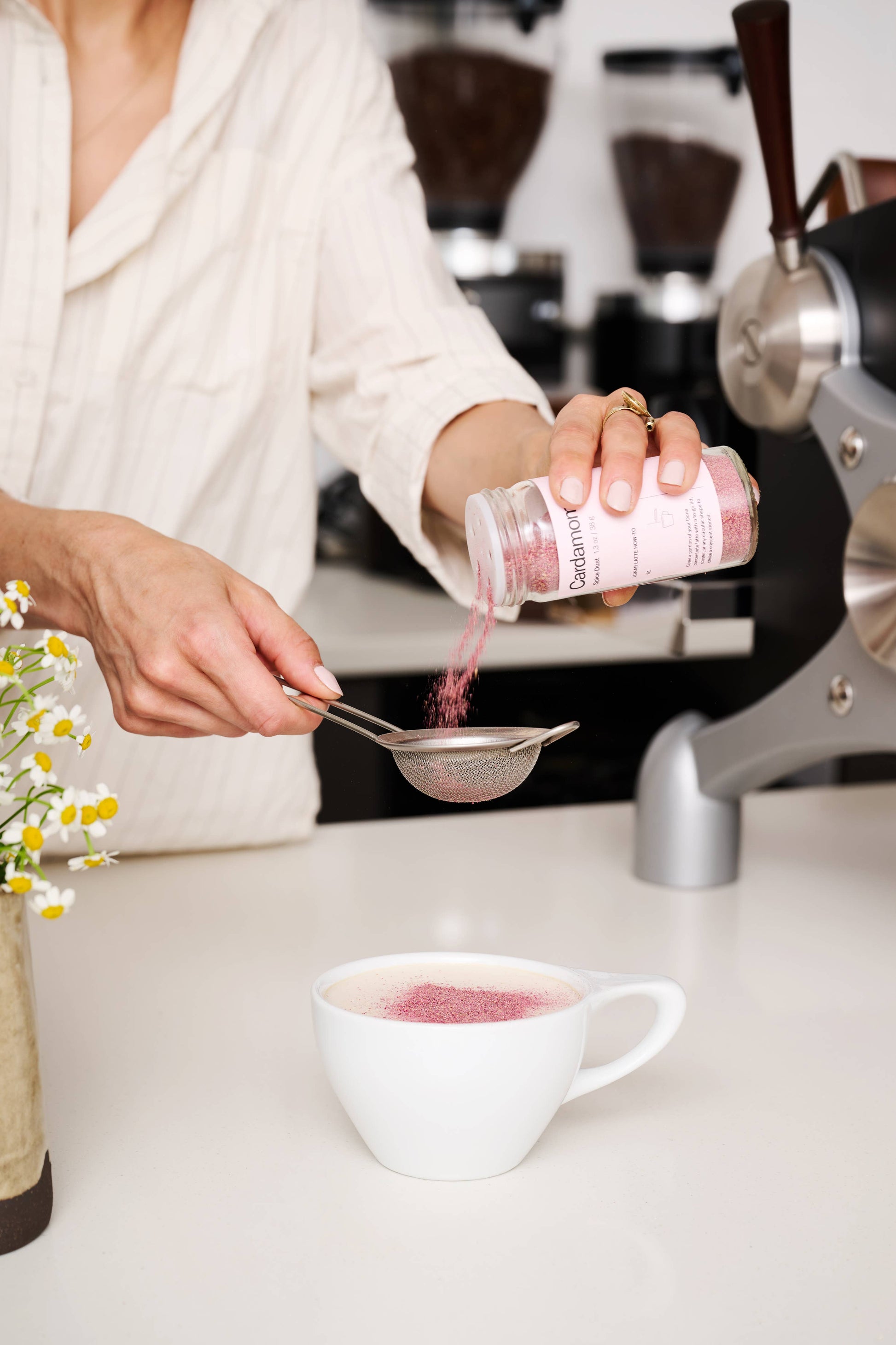 Meet Cardamom Rose: Single origin cardamom, pure rose, black tea directly sourced from the Chota Tingrai Tea Estate for a Cardamom Rose Tea Latte that is rich, pure & an exciting addition to any drink menu.