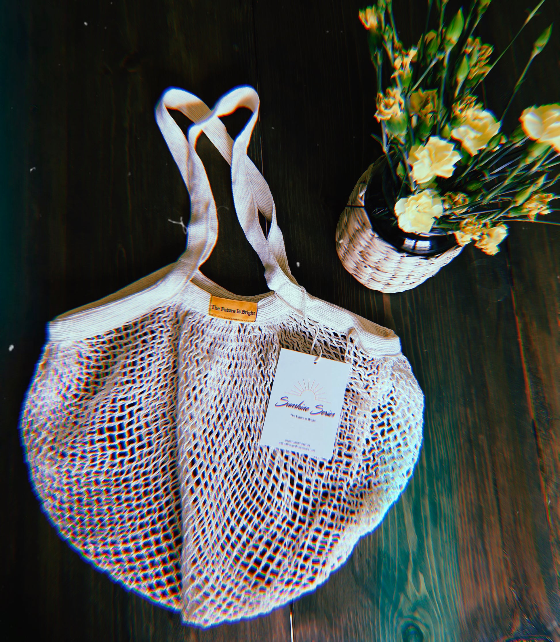This Organic Cotton Net Tote is where it’s at! Lightweight & highly durable, these totes stretch & can hold up to 40 lbs making them stronger than your average grocery bag.