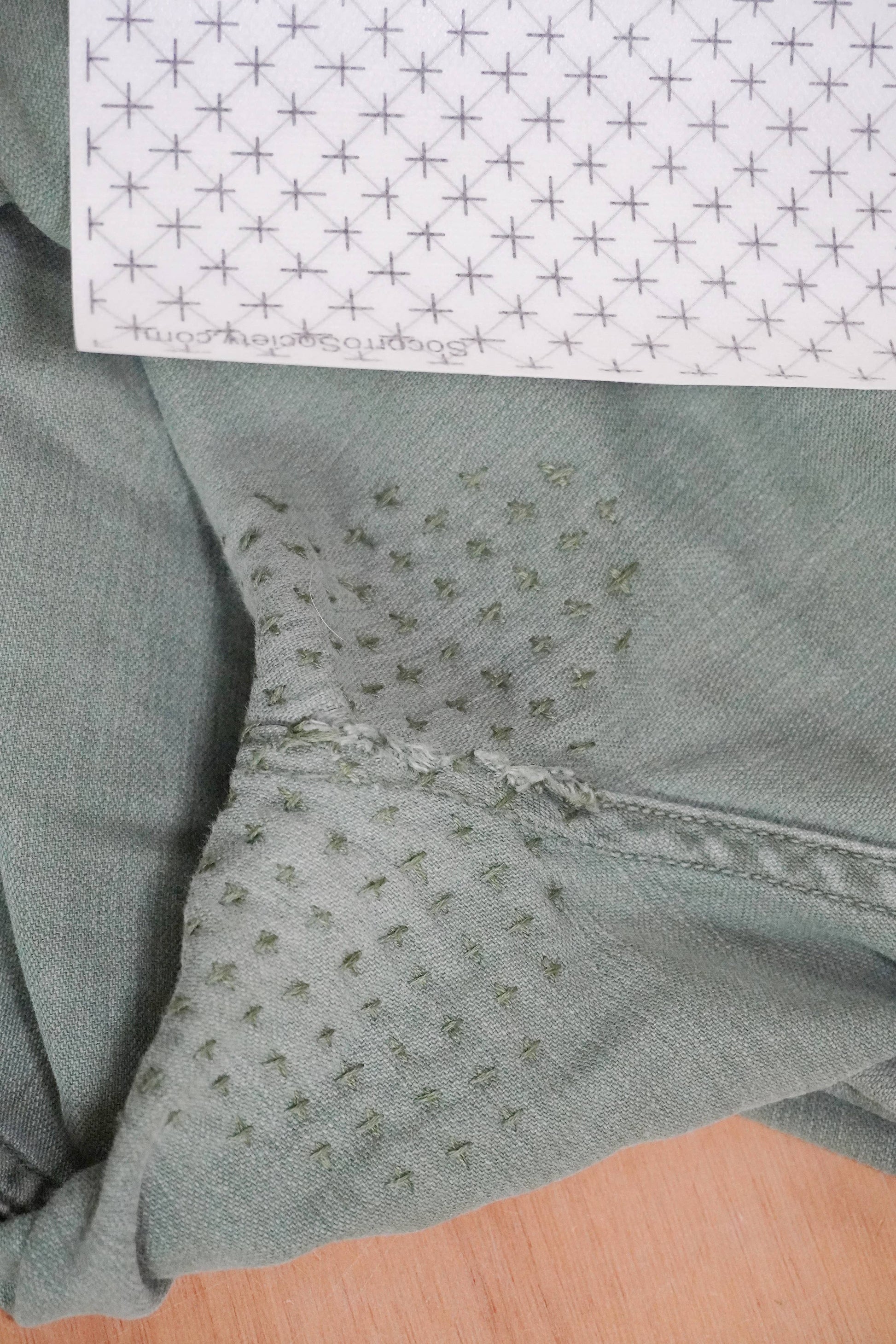 Transform your mending with the Sashiko Inspired Patterns Starter Pack Vol. 2. This easy-to-use kit features four traditional Hitomezashi embroidery patterns, perfect for visible mending and creating decorative stitches. No need for tracing, rulers, or chalk—just peel, stick, stitch, and wash away for effortless, professional-looking results. Whether you're repairing your favorite jeans or adding a unique touch to accessories, this Sashiko embroidery kit is ideal for all skill levels.