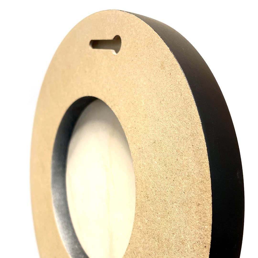 Exclusive Wings on Wood Collection. Reproduction of artist Matt Adrian's original bird painting on 10 inch diameter round panel. Image printed directly onto birch wood. Black frame. Signed by the artist on the back. 3/4" thick. Keyhole hanger. Made in Oregon.