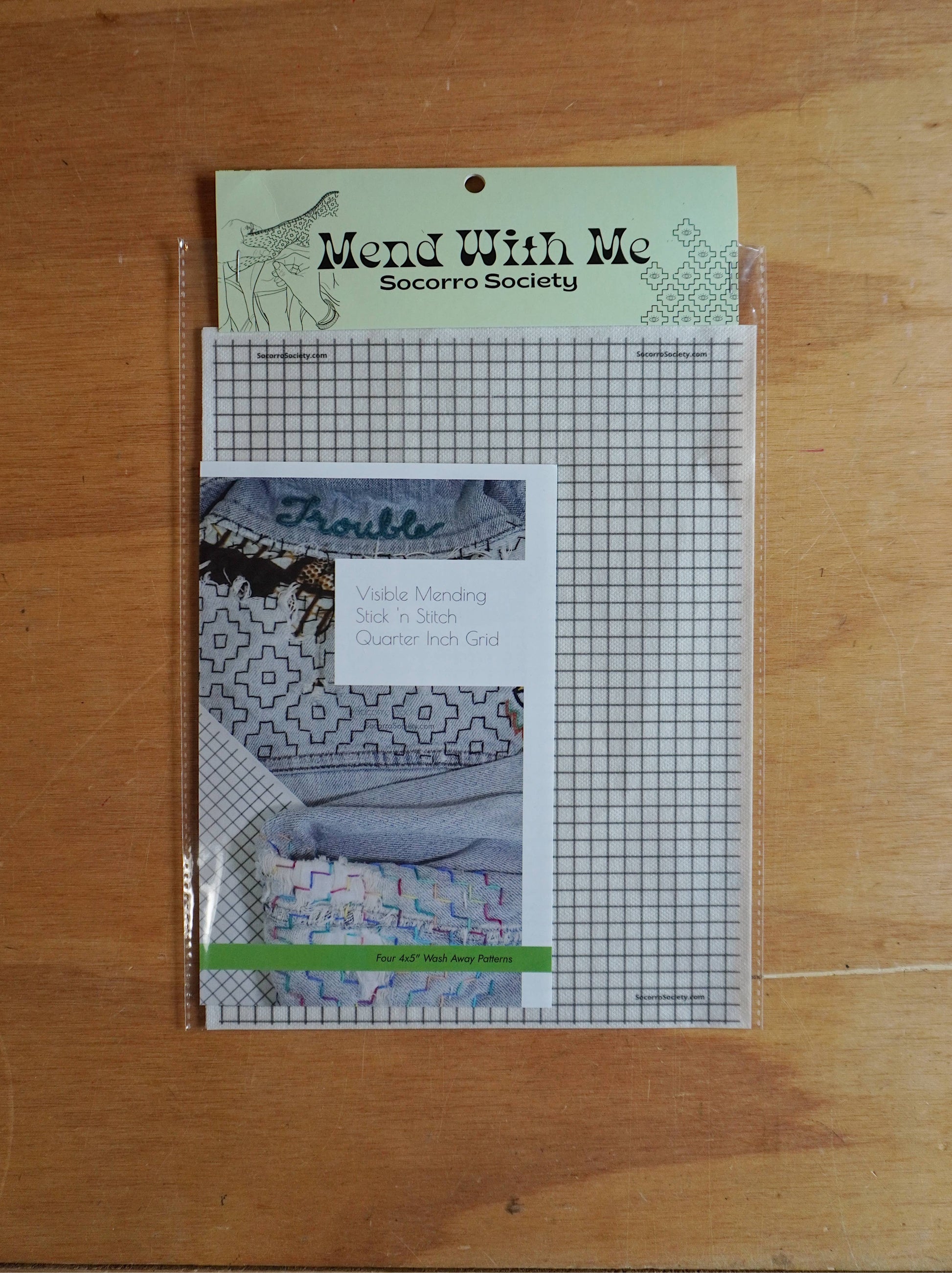 Achieve precise, even stitches with our Visible Mending ¼” Grid Full Sheet Stick & Stitch Pattern. This wash-away transfer eliminates the need for chalk, rulers, or tracing paper—simply peel, stick, stitch, and wash away for flawless, professional results. Ideal for visible mending, this large 8.5x11 sheet features a ¼” grid to help you maintain even spacing for repairs, decorative stitching, and DIY clothing projects. Perfect for sashiko, slow fashion, and hand embroidery enthusiasts looking to make sustainable clothing repairs.